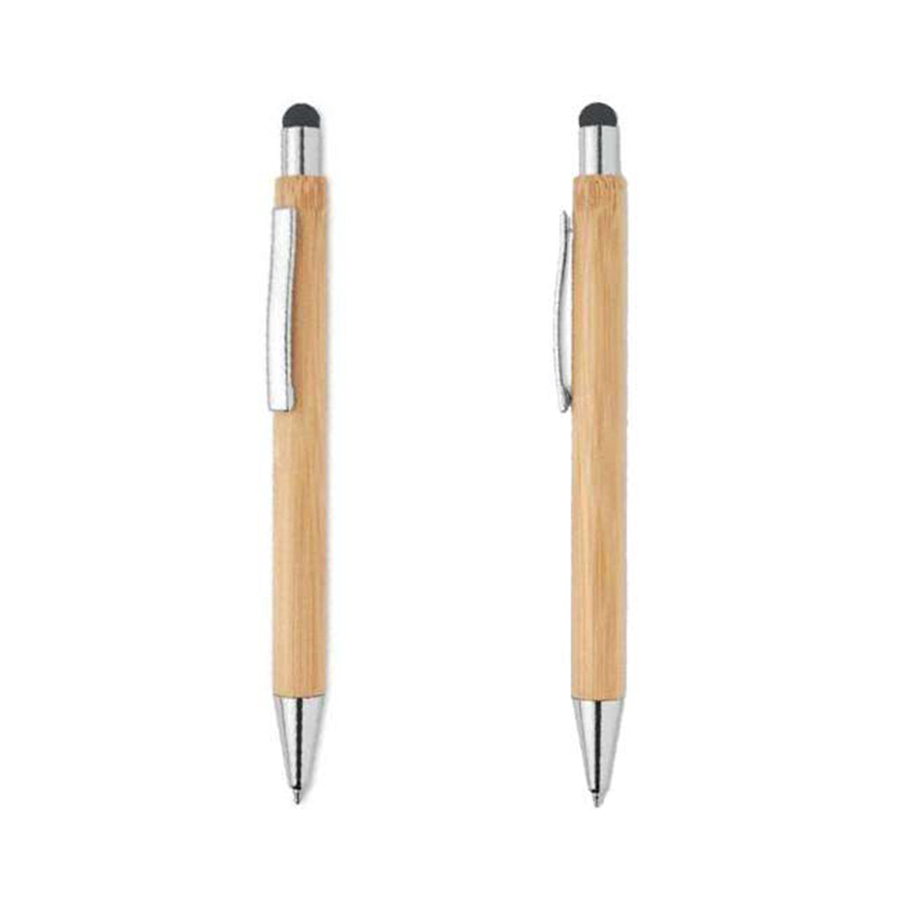 Introducing Balikh, an eco-friendly bamboo pen that combines sustainability with style. This sleek pen features a chromed finish button, tip, and clip, adding a modern touch to its natural bamboo body. The push-button mechanism makes it easy to use, while the built-in stylus ensures a seamless experience with touchscreens, making it perfect for those who embrace both traditional and modern writing methods. Balikh is not only an environmentally conscious choice but also an elegant and practical writing instrument. Its compact size and lightweight design make it an excellent choice for corporate gifting, ideal for clients, employees, or business partners who value sustainability and functionality. With various customization options such as screen printing, UV printing, or laser engraving, you can easily personalize each item with your company logo or message.