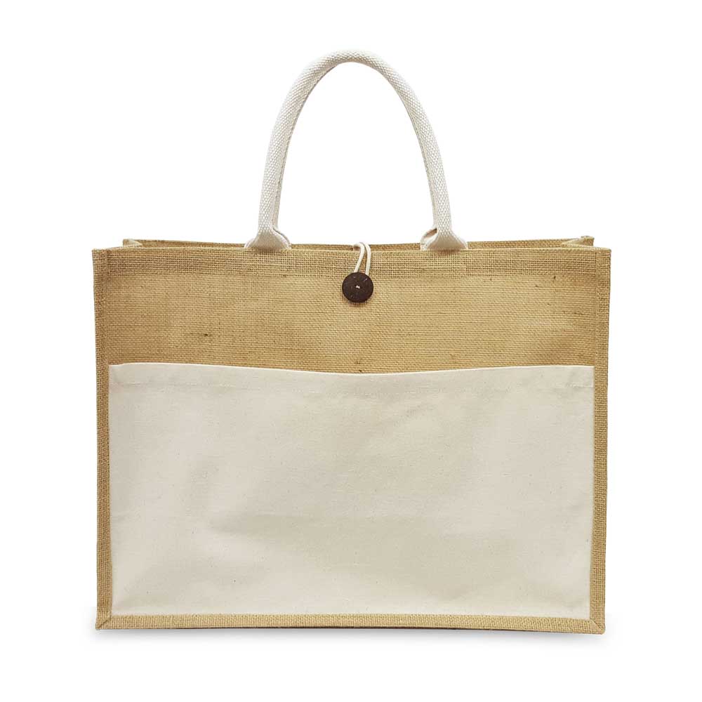 Material: Main body made of 100% natural jute; pockets made from soft cotton canvas