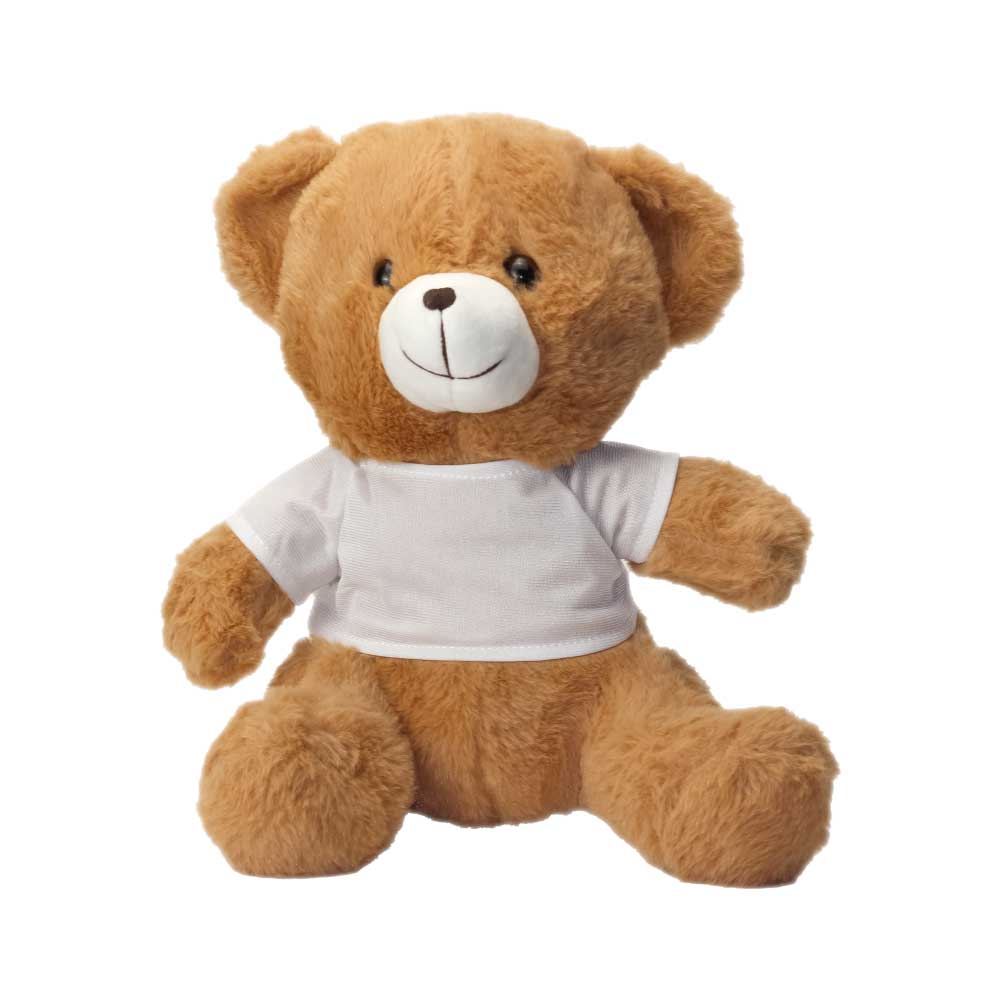This promotional teddy bear is made of soft plush material and comes with a white t-shirt that can be customized with your brand logo or message. It is a charming and eye-catching giveaway item suitable for all ages.