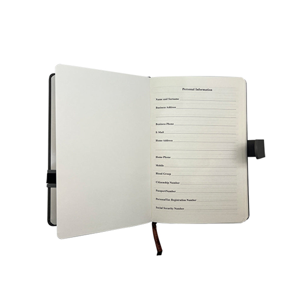 Experience premium sophistication with our A5 Thick Notebook, thoughtfully designed to combine style, functionality, and practicality. This compact notebook boasts 128 sheets (256 pages) of 70GSM off-white lined paper for a smooth and seamless writing experience. Its luxurious velvet touch fabric cover offers a soft and refined feel, while the strong magnetic closure ensures your notes are secure and protected. The integrated sliding pen slot keeps the included pen conveniently in place, and the built-in ribbon bookmark helps you quickly locate important pages. Complete with a personal information page, this notebook is both customizable and practical, making it ideal for professionals, students, and everyday use. Choose from three elegant colors—Black, Blue, or Grey—to reflect your personal style. Our A5 Thick Notebook exemplifies our commitment to excellence, offering a versatile and elegant gifting option for businesses and professionals alike.