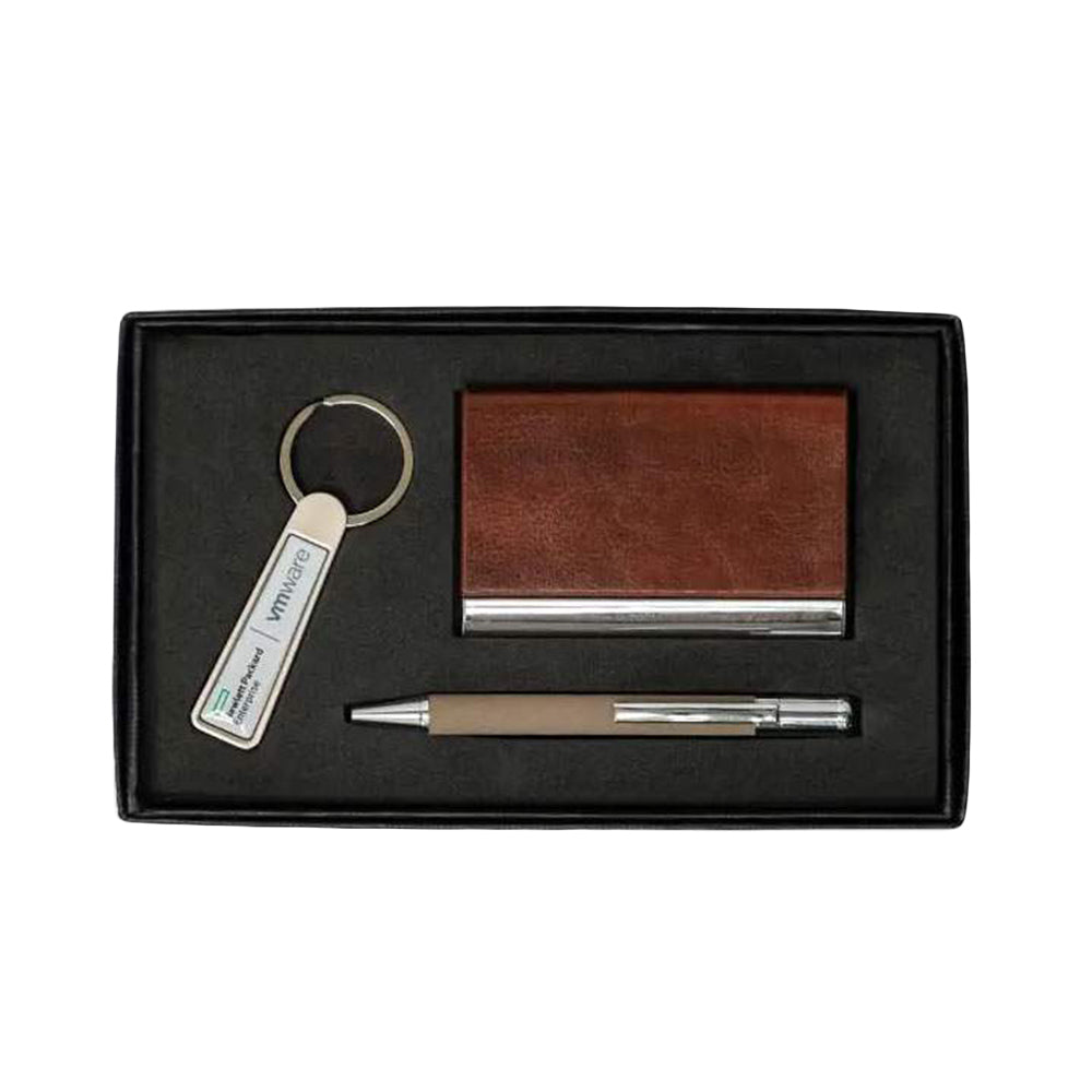Introducing the perfect blend of elegance and functionality, the Rustic Classic Card Case Gift Set is a sophisticated choice for clients or employees. Designed to leave a lasting impression, this gift set combines style and practicality, ideal for corporate gifting. Pelt – A business card case crafted from a combination of leatherette and steel, this stylish model can hold up to 20 business cards, making it a practical yet elegant gift. Available in two refined colors: Tan brown and White. Amber – A sleek and trendy mocha-colored ballpoint pen with silver trimmings and an easy-grip rubber finish. This pen is designed to provide comfort and style, making it the perfect corporate gift. Feego – A unique Reuleaux triangle-shaped metal keychain in silver with a textured branding area, ideal for adding a touch of professionalism to any keyring. This gift set is the perfect blend of classic and contemporary, designed to enhance your corporate branding and create a lasting impression. Ideal for any professional occasion, it offers a thoughtful gift for clients, partners, and employees. Pacific Trading Qatar offers high-quality corporate gifting solutions that combine luxury with practicality. With a wide selection of premium gifts, they are committed to helping businesses in Qatar and beyond strengthen their brand presence and relationships through thoughtful gifting.