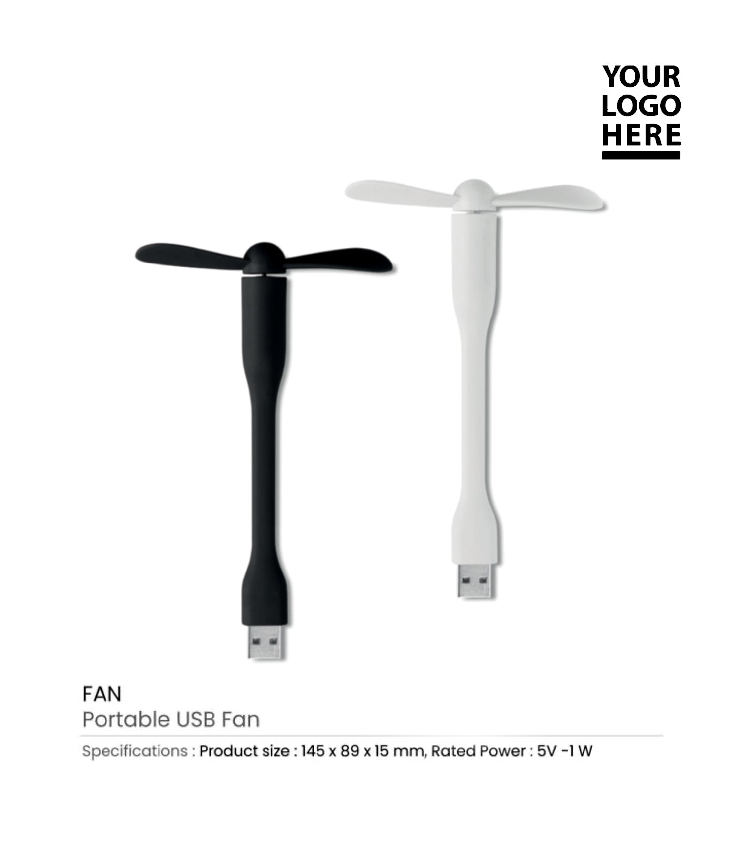 The Portable USB Fan is a convenient and compact cooling solution designed for comfort and ease of use wherever you go. Built for portability, this small yet powerful fan operates by simply connecting it to your phone, laptop, or power bank via USB. Once plugged in, it starts rotating instantly, providing a refreshing breeze in seconds. Equipped with a silent motor, the fan operates smoothly without any noise, ensuring a comfortable and peaceful experience—perfect for work, travel, or relaxation. Its flexible material construction makes it both durable and reliable, capable of withstanding regular use while maintaining its shape and performance. With an output power of 5V–1W and a compact size of 145.5 × 89.3 × 15 mm, the fan is easy to carry in your pocket or bag. It’s available in two color options, making it ideal for personal use or as a practical promotional giveaway. For branding, the fan supports Full-Color UV Printing and Screen Printing, both offering vibrant, lasting results that make your logo stand out beautifully. A perfect combination of function and promotion, the Portable USB Fan is an excellent choice for summer campaigns, tech events, or corporate gifting.