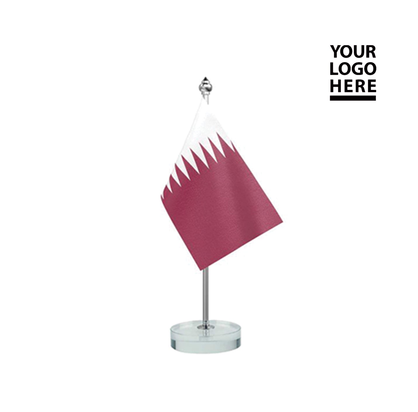 Enhance your decor with the timeless elegance of our Qatar Table Flag with Glass Base. Featuring a vibrant 30 x 20 cm polyester flag atop a 35 cm sturdy pole, this design is elevated by a sleek and solid glass base, adding a refined touch to your office, conference table, or National Day celebration setup. The glass base not only ensures stability but also offers a modern aesthetic, making this table flag a standout decor item for formal events or promotional campaigns. Celebrate Qatar's unity and pride with this exceptional keepsake, perfect for commemorating National Day or showcasing your patriotism year-round. As a trusted supplier of premium promotional items and corporate gifts, Pacific Trading & Contracting brings you exclusive products that combine quality with sophistication. Impress your clients and colleagues with the Qatar Table Flag with Glass Base, a symbol of excellence and national pride.